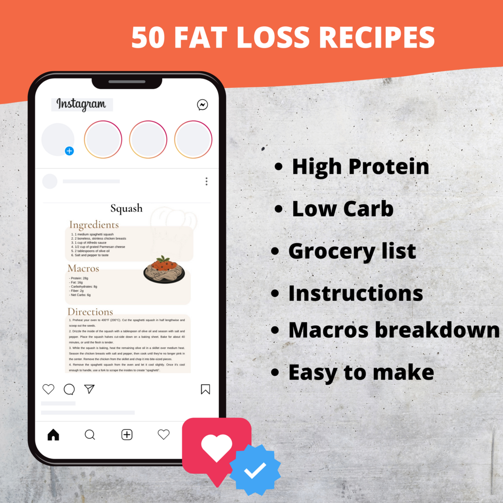 Unveil your ultimate summer body with "The Summer Body Recipe Book" – your ultimate guide to shedding those extra pounds with ease and enjoyment! This digital recipe book is packed with 50 mouthwatering recipes that are high in protein and low in carbohydrates, specifically tailored to support fat loss.